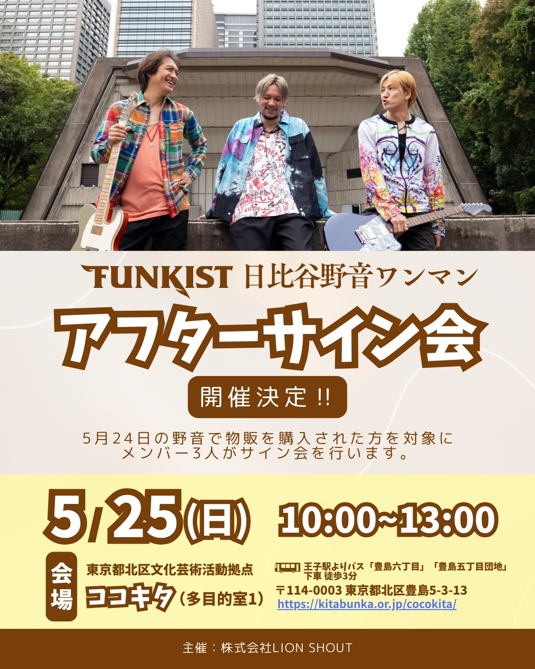 【野音ワンマン翌日5月25日、北区王子にてアフターサイン会開催決定】