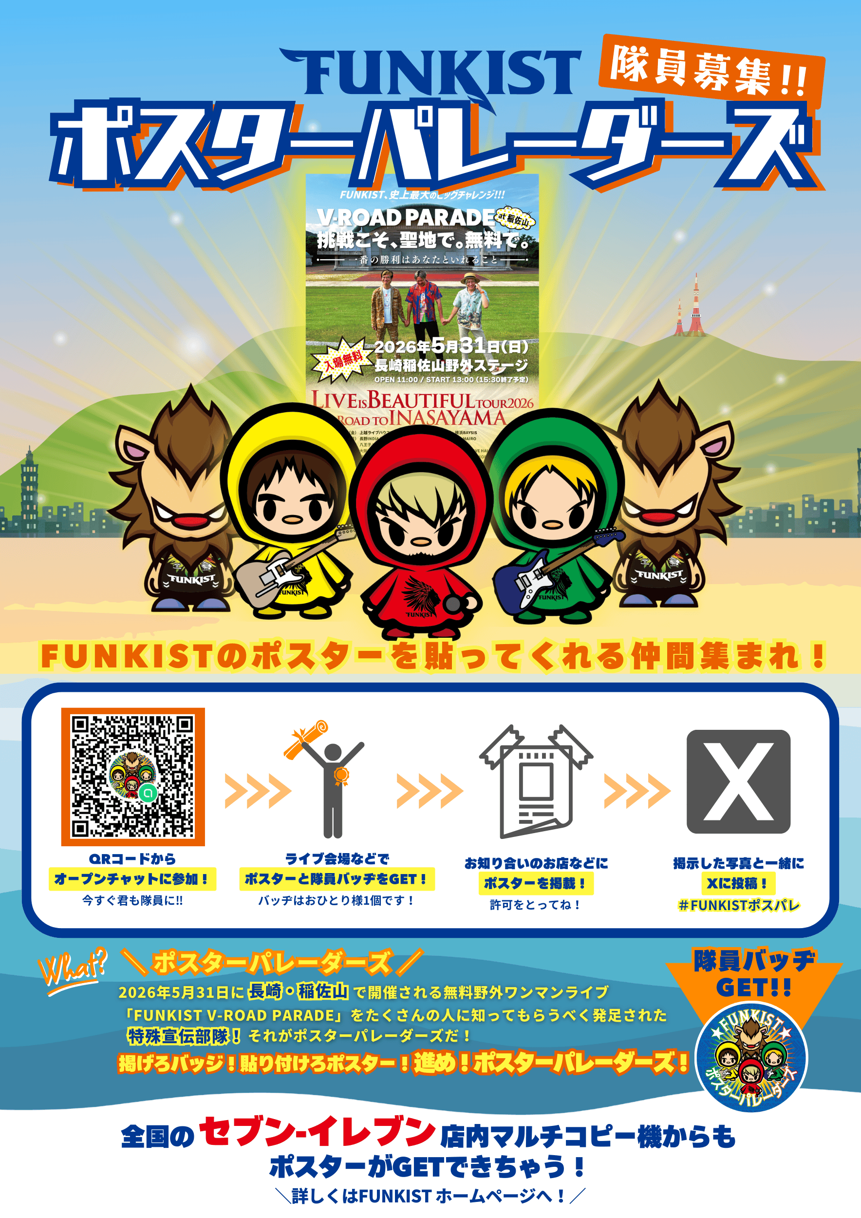 News 2026/02/24 ( Tue ) UP 稲佐山1万人入場無料ワンマン成功へ―― 宣伝特殊部隊「ポスターパレーダーズ」隊員大募集!!