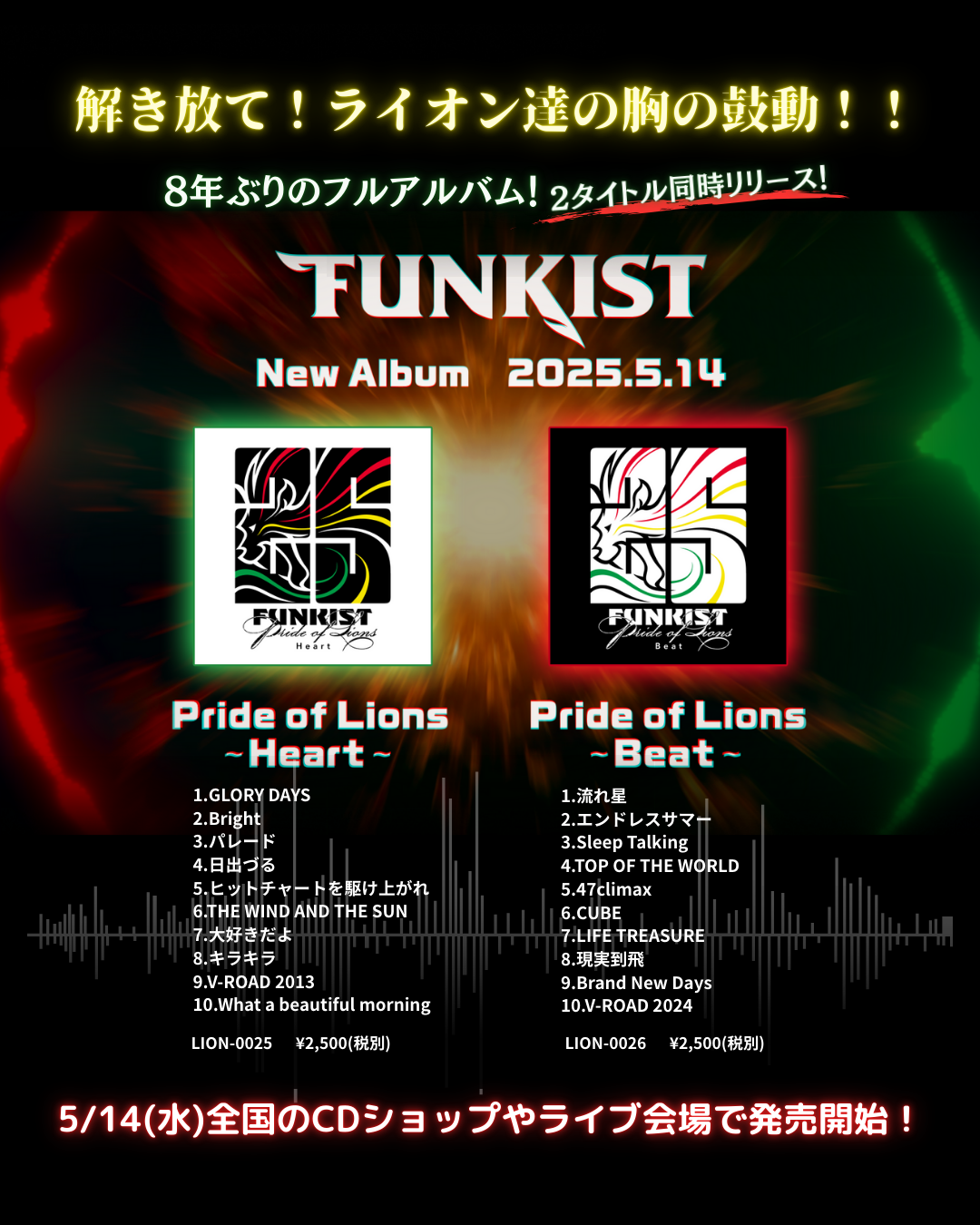 今作はFUNKIST結成25年を記念して『Pride of Lions〜Heart〜』と『Pride of Lions〜Beat〜』の2タイトルを同時リリース!!